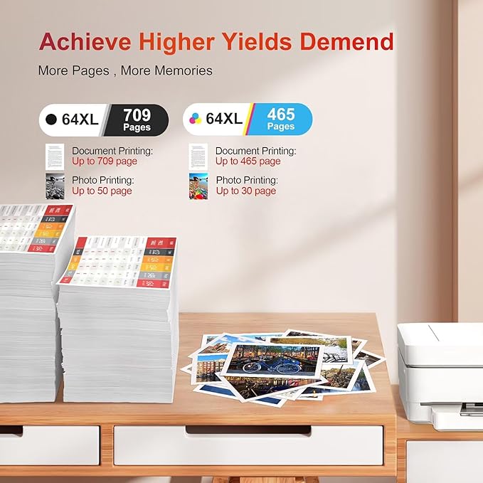 - Professional Printouts: ejet for hp ink 64xl black and color combo pack xl ensuring 100% instant printer recognition, real-time ink tracking (±1% precision), and automated page-count estimates – eliminating compatibility warnings while putting ink management and print confidence at your fingertips.