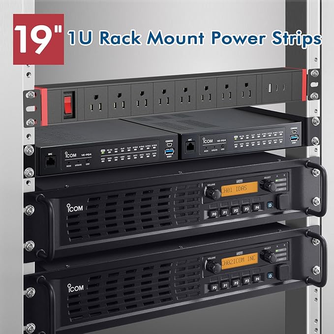 - Wall Mount Power Strip - This mountable power strip comes with mounting screws, allowing the wall mount plug power strip to be securely installed on workbenches, garage, bedside, behind the tv, under counters/desks/cabinets, or dressers. Connect with 6ft 16AWG extension cord,not compatible with rack equipment