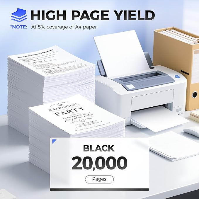 - High Page Yield: Up to 20,000 pages per 60F1X00 Black Toner Cartridge,(at 5% coverage of A4 Paper), High Yield Version 60F1X00 Toner Cartridge.