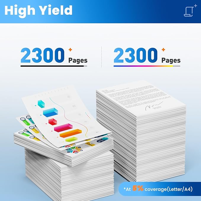 - 410A Toner Cartridge Yield (approx.): 410A toner cartridges 4 pack high yield up to 2,300 pages per 410A black toner cartridge, 2,300 pages per 410A color toner cartridge (Letter/A4, at 5% Coverage)