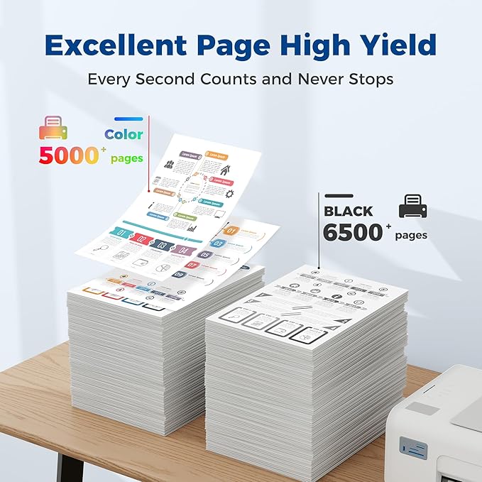 - High Page Yield: Our 410X toner cartridges offers high-yield performance, delivering up to 6,500+ pages per black cartridge and 5,000+ pages per color cartridge (based on 5% coverage of A4 paper), perfect for high volume printing needs of businesses.