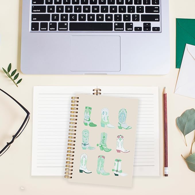 BearCake Green Cowgirl Boot Notebook, Cowgirl Stuff, Cowgirl Gifts, Western Office Supplies, Western Stuff for Women, Boho Western Notebook Journal 5.5x8.3 Green