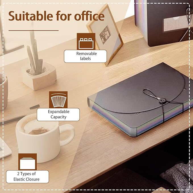 - Portable & stylish: Classic lightweight folder organizer can be Stand on its own on the desk and not easy to tip over. To enhance your file organization, we provide blank labels along with this folder. You can personalize them to suit your requirements, such as labeling sections by month for effortless file retrieval.The dividing sections of the rainbow file folders come in six bright colors, stylish and beautiful. Versatile document organizer for home, office, school, and travel scenarios, compact and light.