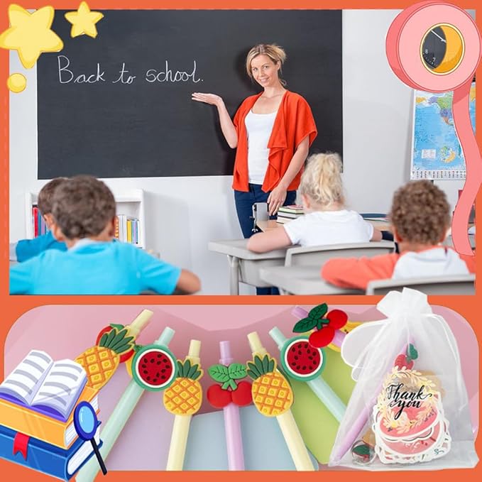 - 4. Smooth Writing: Each Teacher's Day gift pen is 5.9 inches long, convenient and durable. The blue ink writes smoothly and is ideal for daily notes. The pen tip is decorated with cute fruit patterns, adding a fun back to school favors theme