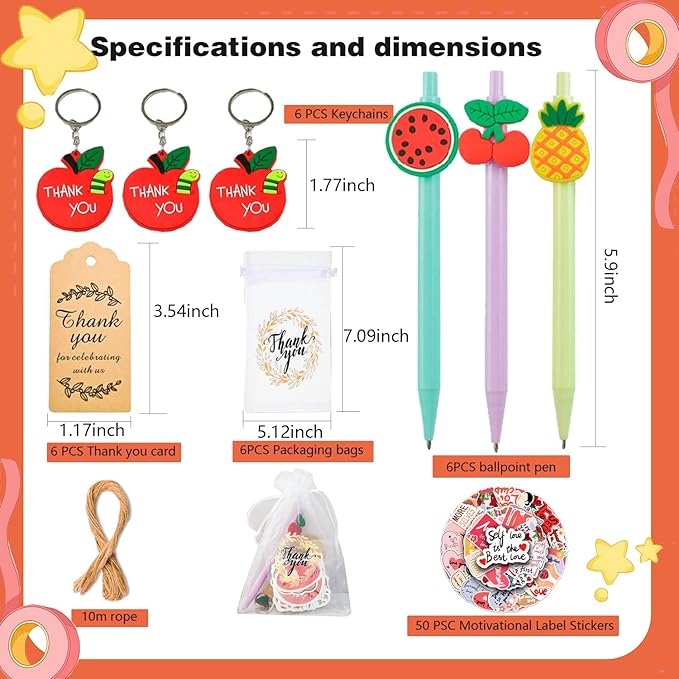 - 3.Back to School Theme Design: our back to school contains motivational teacher pens, cher keychains,motivational stickers, with a thank you tag and an organza bag, you can write your name on the card and give it to others as a gift
