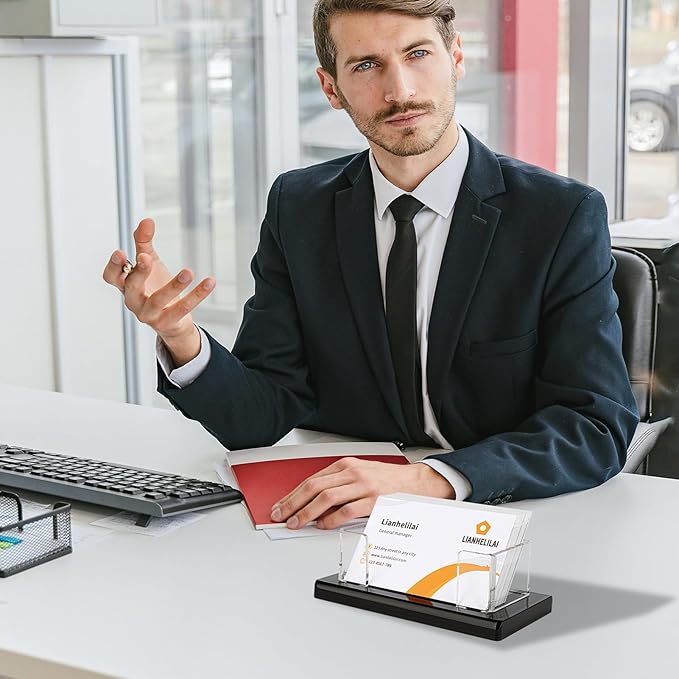 - Easy to Pick Up: the length of the business card holder is slightly wider than regular business cards, making it easy to pick up; the wider design allows business cards to be placed for a better presentation