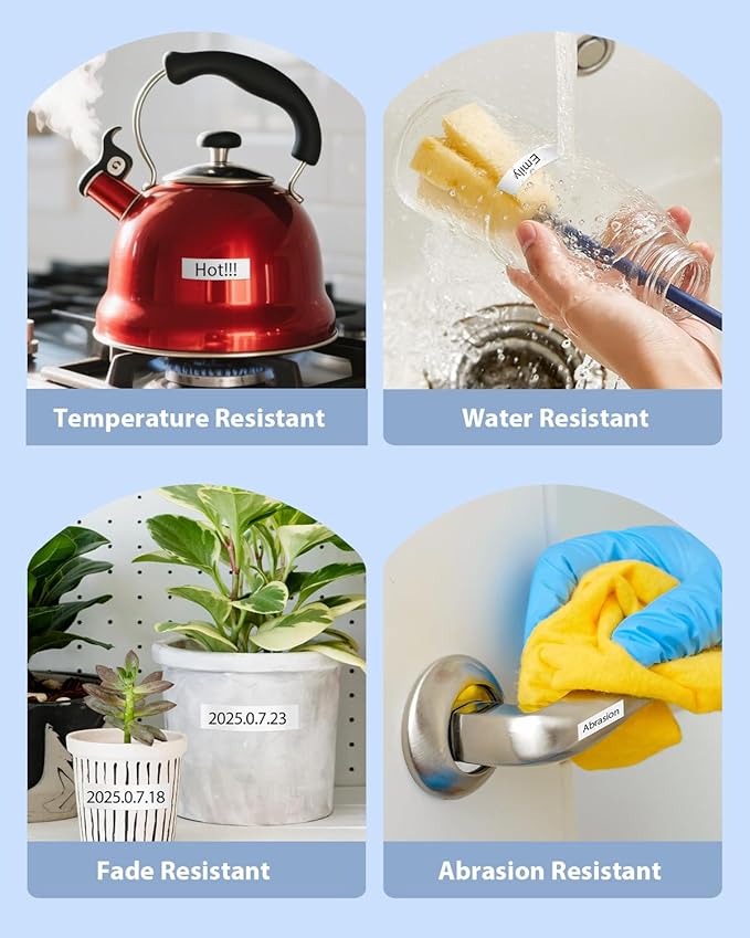 - Excellent Printing Results: All the tze label tapes are printed clearly and smoothly, they come with split backing design, and the backing tape is split lengthwise in the middle for easy peeling; Ptouch tze label maker tapes with the feature of water resistant, temperature resistant, fade resistant, oil resistant, abrasion resistant, chemical resistant, and no sticky residue