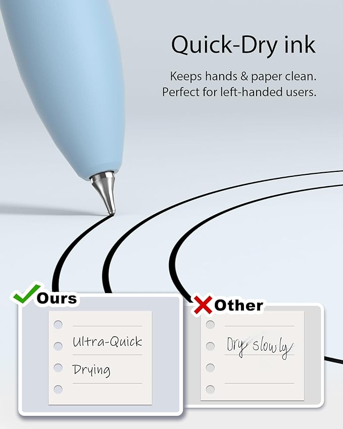 - Quick-Dry Long Lasting Ink:0.7mm black ink can slide effortlessly, dry immediately, & is not easily dirty. It has a high-capacity reservoir (up to 1300 meters), which is very suitable for left-handed & right-handed users.
