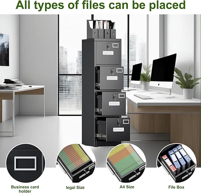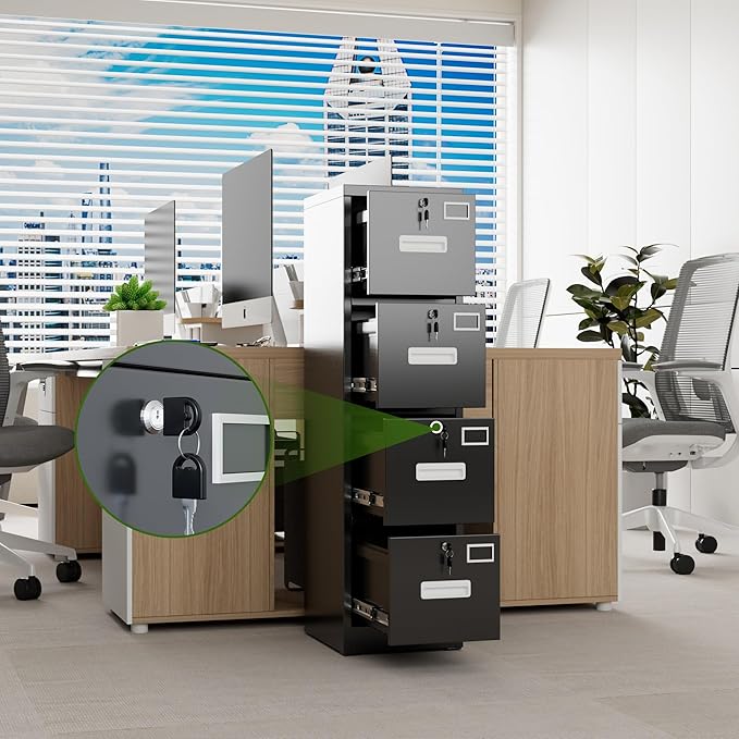 - 【4 Lock- Proint Privacy Protection】4 dedicated key-operated locks secure each drawer independently, enabling confidential storage for HR files, financial records, or client documents. Master keys are uniquely coded to prevent cross-cabinet access.